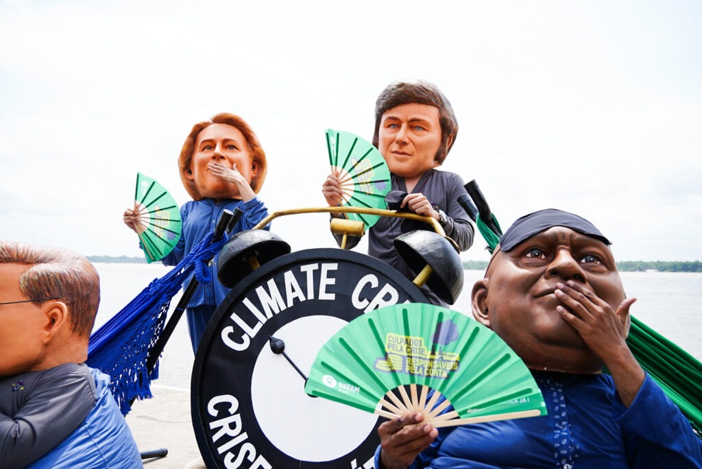 Oxfam leva “Big Heads” a Belém em ação por ação climática insuficiente de líderes globais