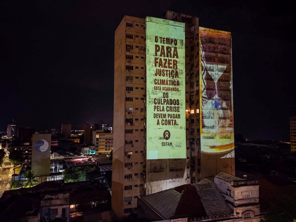 Na semana de início da COP30 em Belém, a Oxfam Brasil, em parceria com a Aliança dos Povos Pelo Clima e o Levante Popular da Juventude, promoveu duas ações de impacto na capital paraense para cobrar ações concretas dos líderes globais frente à emergência climática.